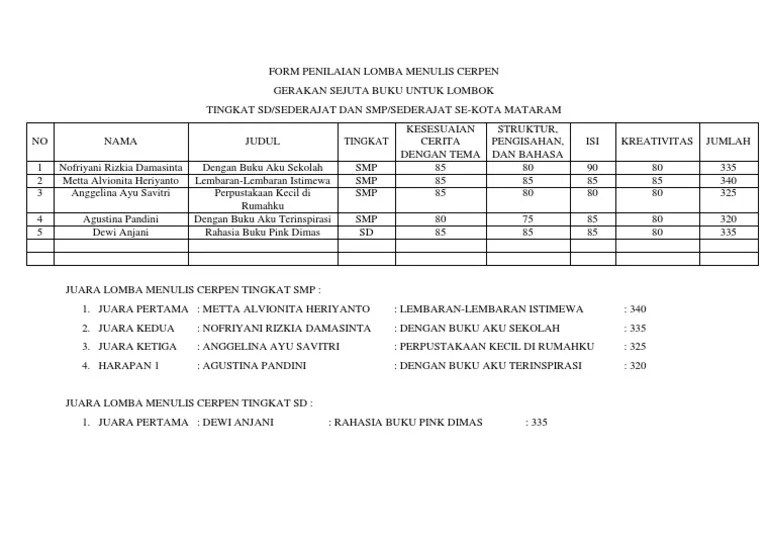Ini adalah contoh form penilaian lomba cipat dan baca puisi. Mimik adalah gerak air muka. Format penilaian lomba literasi cipta baca puisi search the worlds information . Penampilan dari segi busana yang rapi dan sikap percaya diri di depan panggung. Kriteria dalam penilaian lomba puisi · 1.
