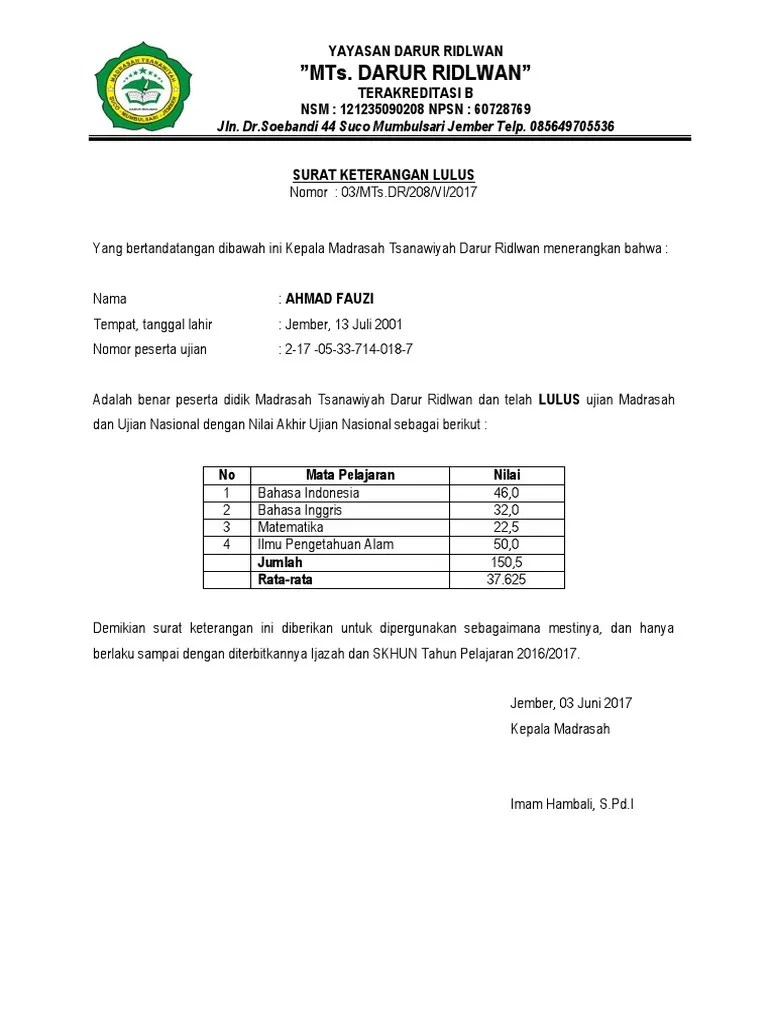 Di informasikan kepada peserta didik baru. Surat keterangan lulus (skl) terdiri dari warta data diri siswa serta daftar nilai yang diperoleh oleh siswa pada ujian madrasah (um) 2021 yang . Surat keterangan lulus smp / mts tahun 2021 ,ijazah untuk tahun lulus sebelum 2021; Contoh surat keterangan lulus (skl) sementara yang dikeluarkan oleh sekolah atau madrasah sebagai pengganti ijazah/shun. Selanjutnya pembagian surat keterangan lulus (skl) akan dilaksanakan pada: